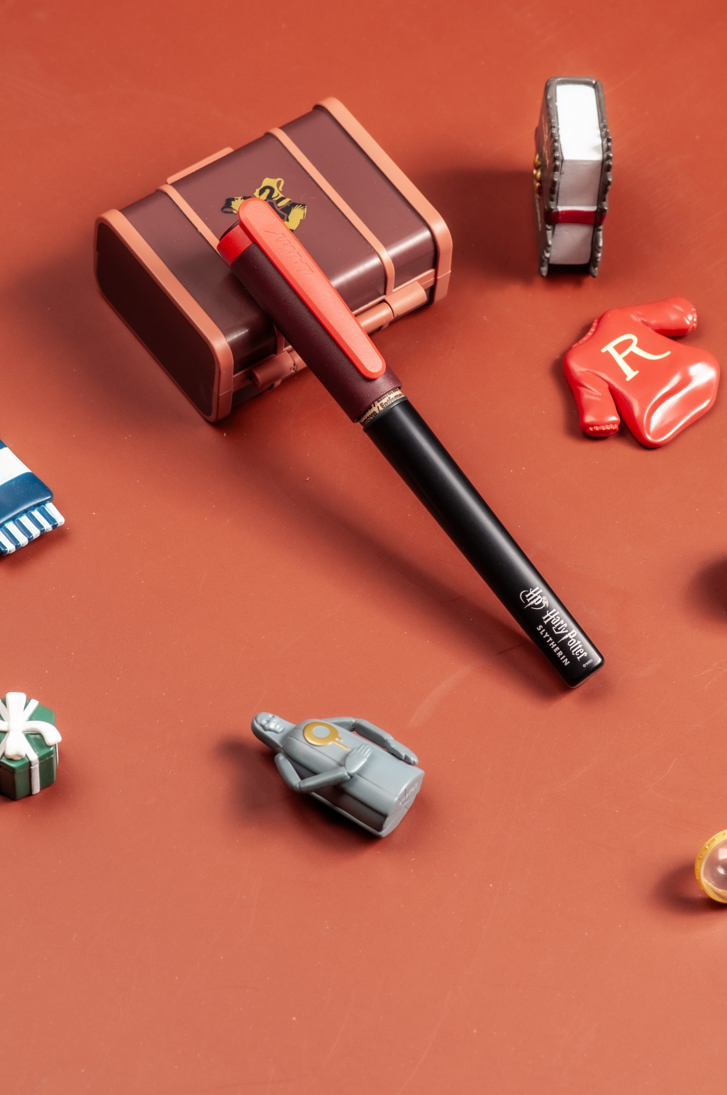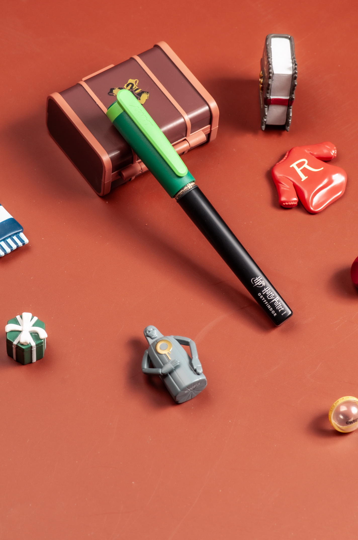 • 哈利波特 葛萊芬多 紅色 鋼筆 : 黑色筆身與紅色筆蓋的代表顏色展現葛萊芬多不畏懼險境而擁有勇氣與仗義執言的精神
